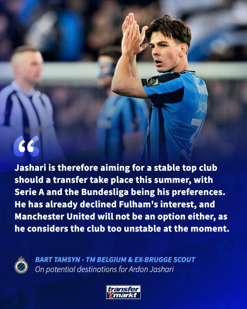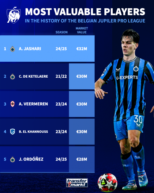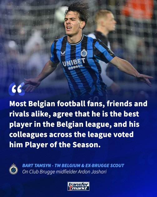 "He was charmed by Borussia Dortmund's interest, but they ultimately chose Jobe Bellingham. The most concrete option was AC Milan. Jashari's exit will not only become Club Brugge's record-sale but the record departure for the entire league. "Club Brugge quickly realised that they could break the previous summer's record transfer fee of €33m (excluding bonuses) for Igor Thiago. An asking price of around €40m was quickly set for him. Jashari is also a very calm guy, very mature for his age."